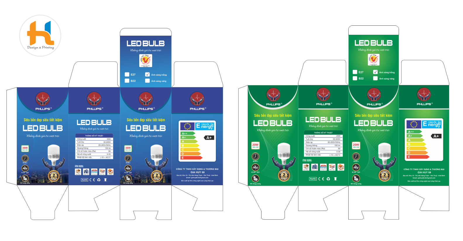 Thiết kế in ấn vỏ hộp đèn LED tại inhunglinh.com