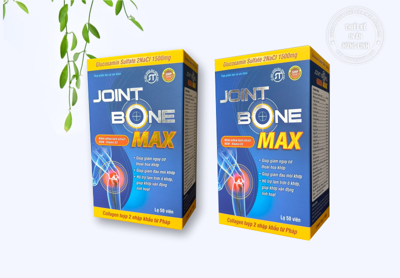 In hộp thuốc Xương khớp "Joint Bone Max" ép nhũ 2 màu tên sản phẩm giúp sản phẩm bắt mắt chuyên nghiệp hơn