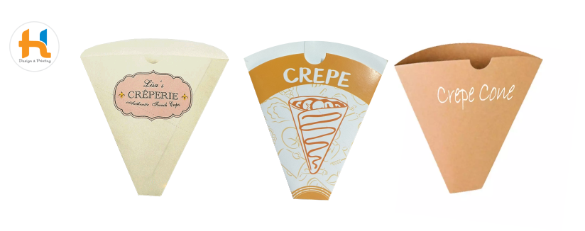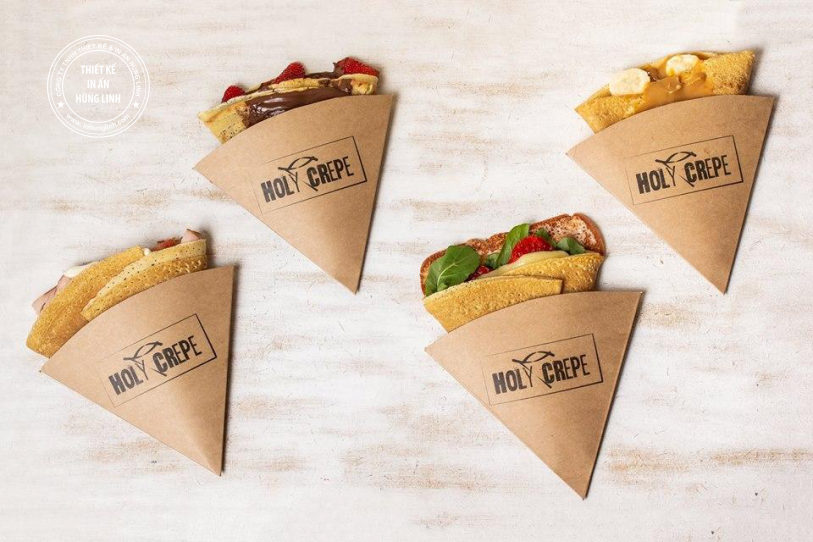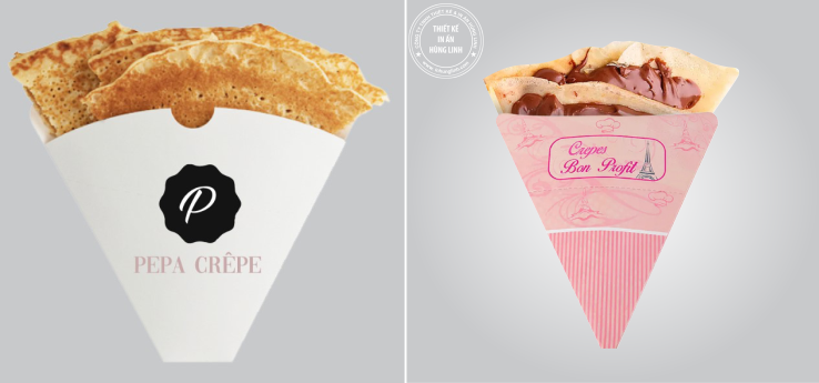Túi đựng bánh Crêpe thường in trên chất liệu giấy Kraft, giấy Duplex, hay giấy Ivory,…