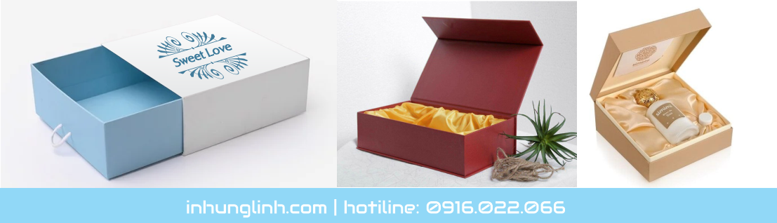 In hộp giấy hay bao bì đựng sản phẩm là một phần thiết yếu quan trọng không thế thiếu của các cơ sở sản xuất trước khi phân phối ra thị trường tới tay người tiêu dùng. Bao bì được thiết kế sang trọng bắt mắt sẽ mang lại hiệu quả kinh doanh tốt hơn cho doanh nghiệp. Tạo được ấn tượng với khách hàng. Cùng inhunglinh.com tìm hiểu về sản phẩm hộp giấy và bao bì sản phẩm đặt in và gia công theo yêu cầu nhé!