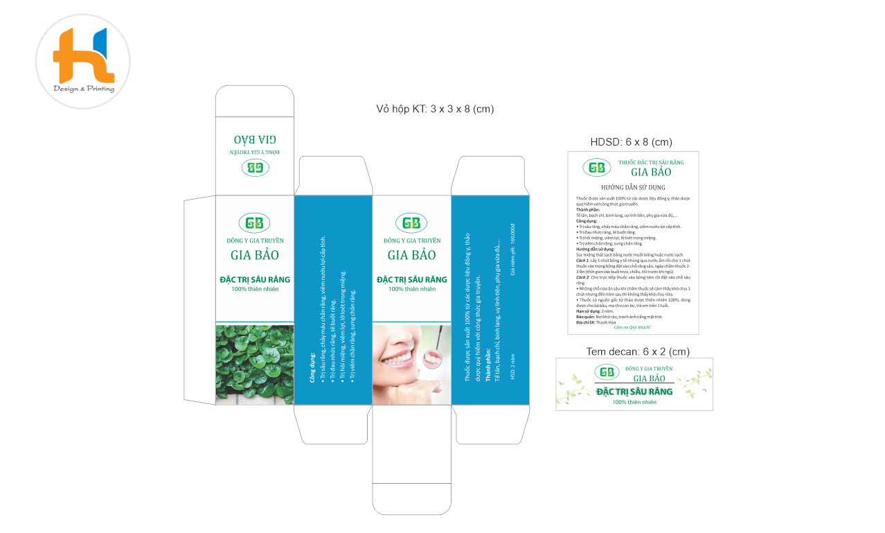 In bộ hộp + Tem nhãn + Hướng dẫn sử dụng thuốc trị sâu răng Gia Bảo
