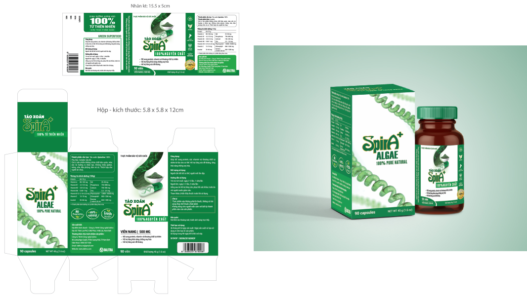 In vỏ hộp tem nhãn Tảo xoắn SpirA+